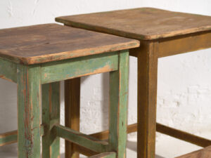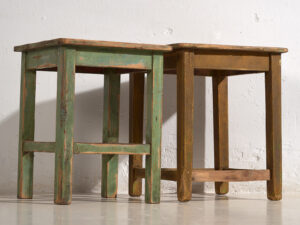 Give a point of originality to your home with these unique pieces, which merge with the contemporary style bringing personality to your home. This set of square tables can be combined with any of our sideboards or with our available antique stools.