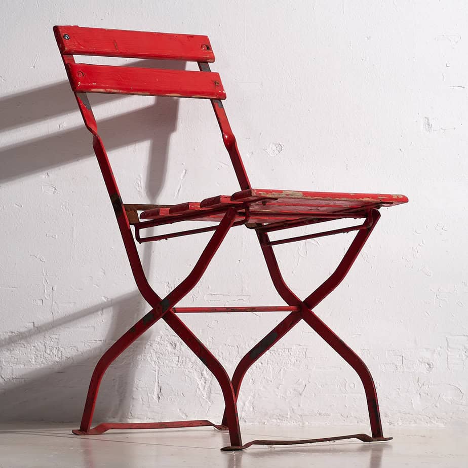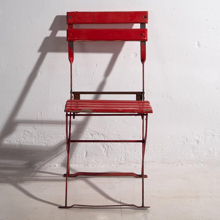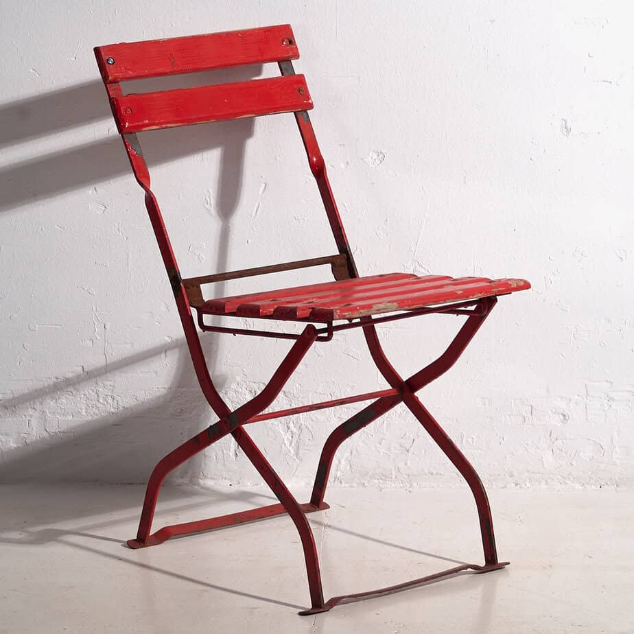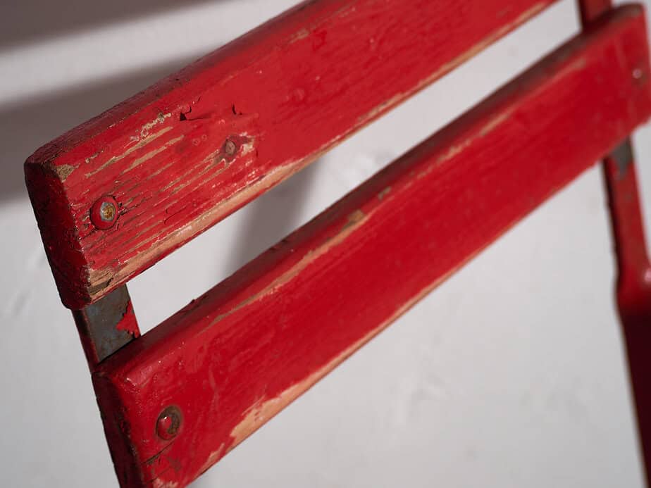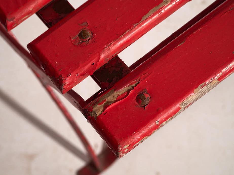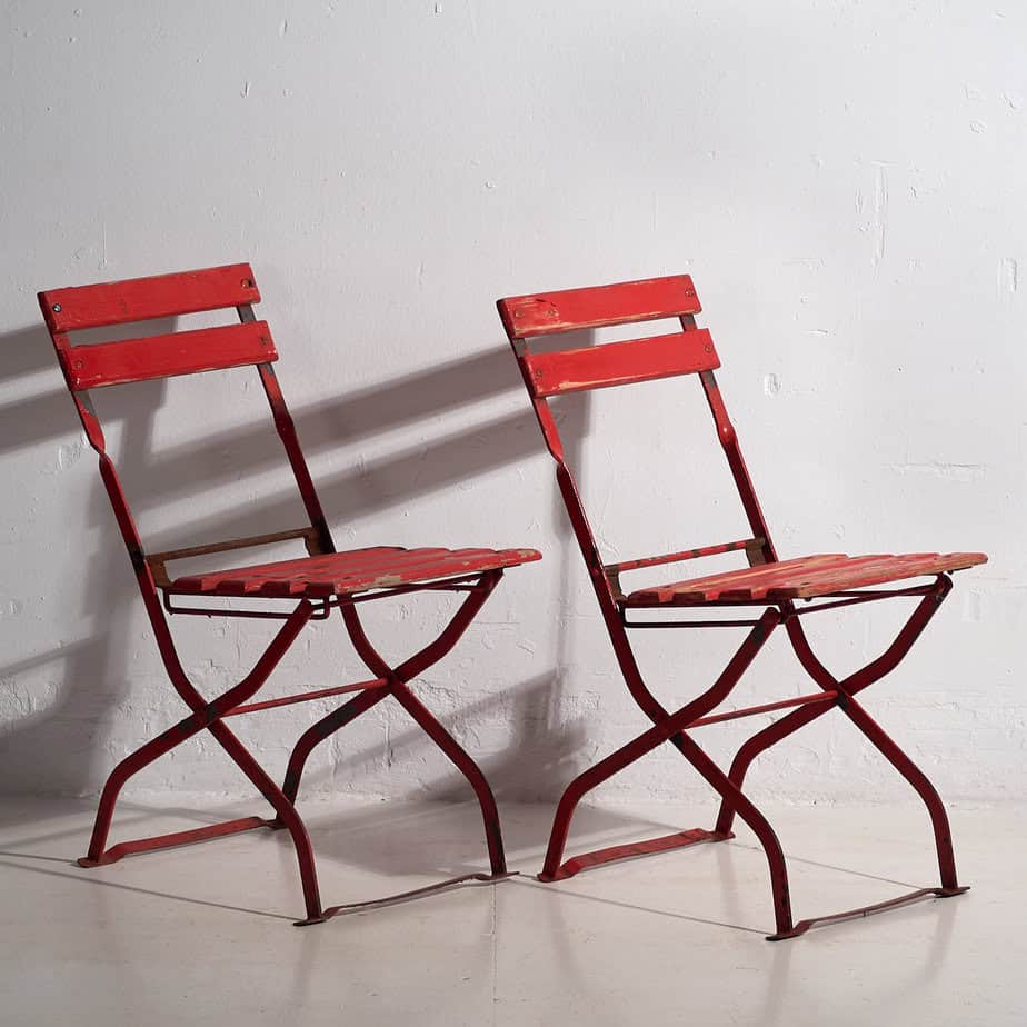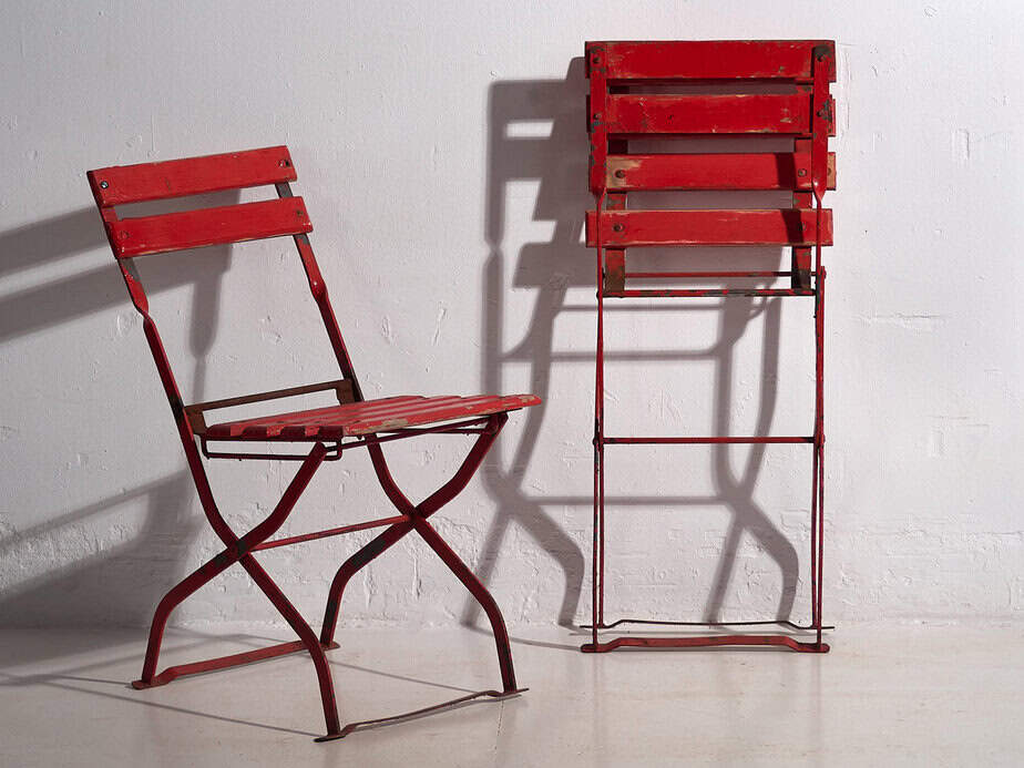 Antique outdoor folding chairs in red color (c.1920). Set of 2 pieces #28