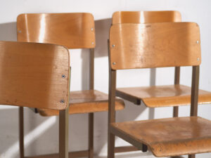 Vintage wooden lounge chairs (c.1950). Set of 4 pieces