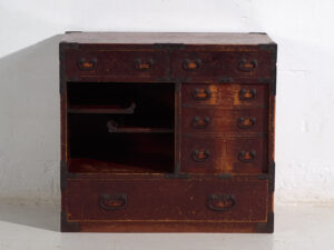 Authentic Japanese choba-dansu (帳場箪笥) from the Meiji/Taishō period (c. 1890-1920). This type of furniture was traditionally used in stores and businesses to store accounting documents, stamps, tools and valuables.