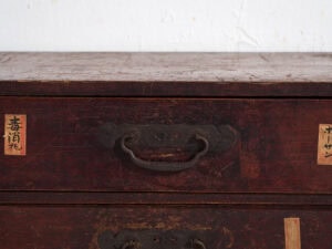 Antique Japanese chest of drawers from the Meiji period (ca. 1870-1900), made of sugi wood (Japanese cedar) with original wrought iron fittings.
