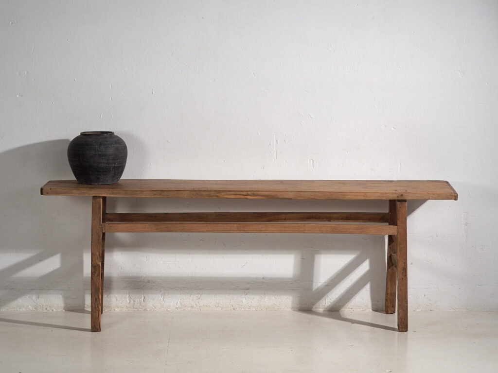 Give a point of originality to your home with this unique piece, which merges with the contemporary style bringing personality to your home. This antique console table can be combined with any of our trunks or with our available antique stools.