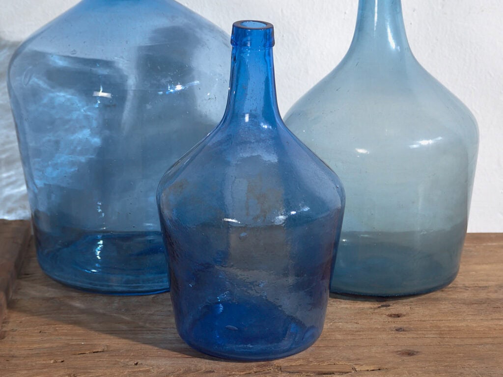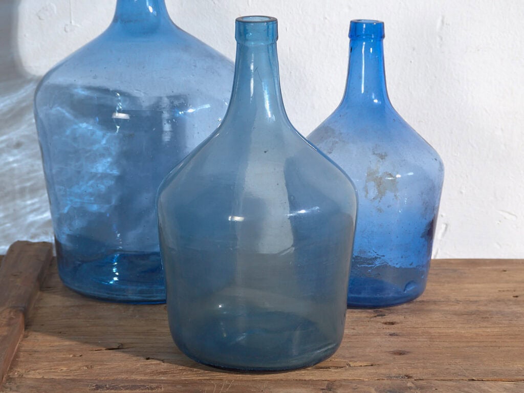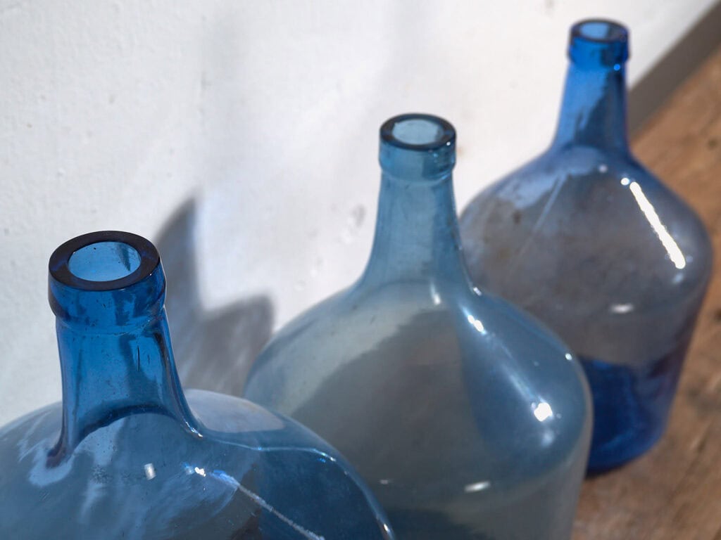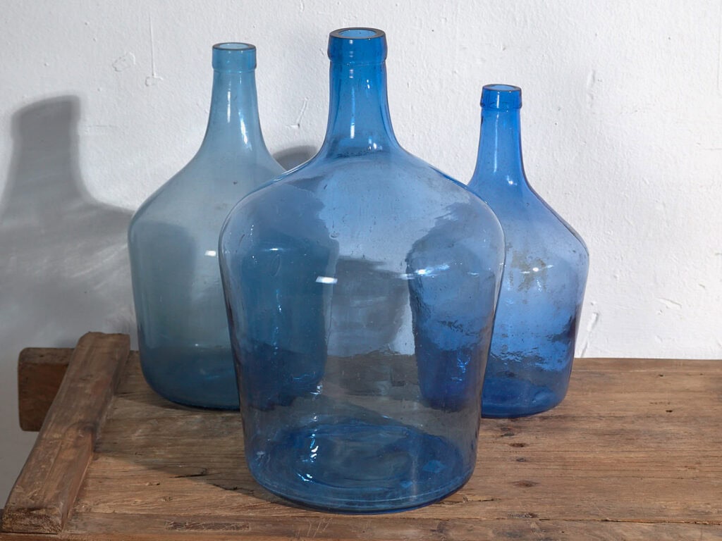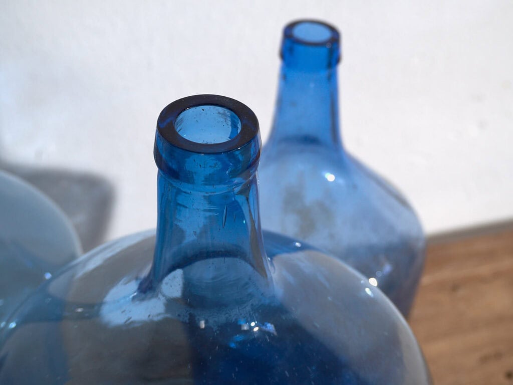 Antique blue damajuanas (c.1920). 3-piece set #3