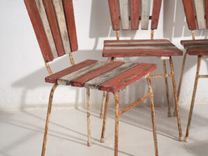 Give a point of originality to your home with these unique pieces, which merge with contemporary style, bringing personality to your home. This set of red garden chairs can be combined with any of our low living room tables or with our available antique cutting boards.