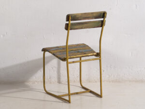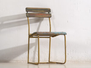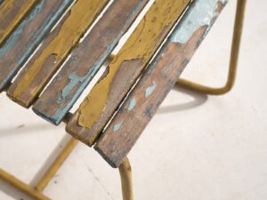 Yellow vintage chair garden built with solid birch wood and metal. It is estimated that it was built around the 60s of the 20th century. This yellow vintage garden chair It stands out for its good state of conservation at the time of purchase. Its patina is preserved in yellow with blue tones. We love its character in the pure vintage style of those years. Our vintage outdoor chair comes from the south of France. It is a metal chair with a solid constitution of this type of construction that was designed to last forever despite the inclement weather outside … Ideal as a decorative element in patios and porches combined with one of our garden tables or in combination with other vintage garden chairs.