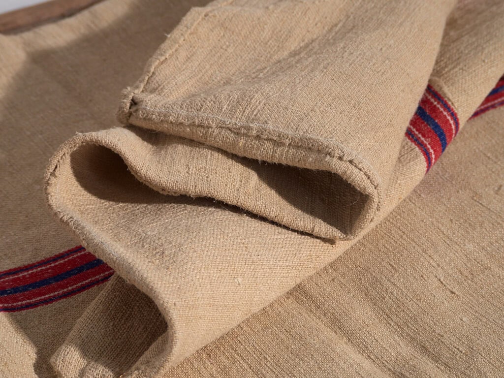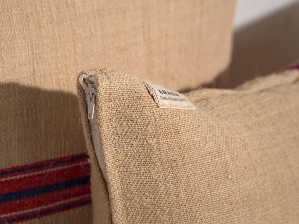 Our cushions are made from century-old linen fabric with an extra-thick fabric weight of 600 g/m². This is nothing like modern linen fabrics, which typically have a fabric weight of around 160 g/m². Our cushions will undoubtedly withstand the test of time thanks to their remarkable durability and strength.