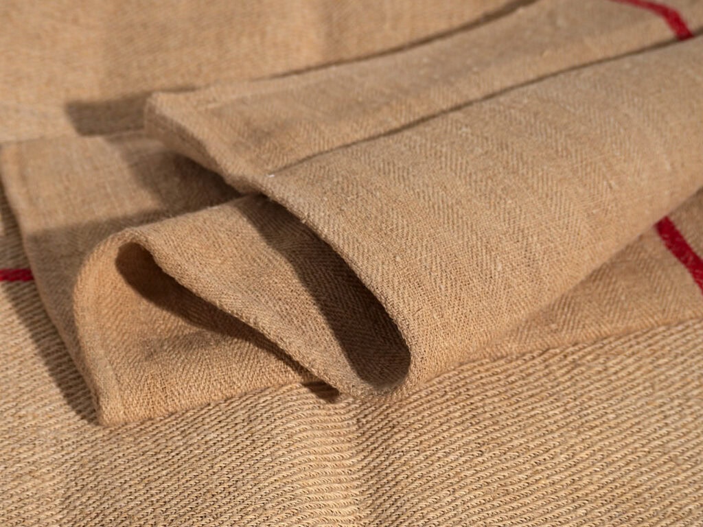 Our cushions are made from century-old linen fabric with an extra-thick fabric weight of 600 g/m². This is nothing like modern linen fabrics, which typically have a fabric weight of around 160 g/m². Our cushions will undoubtedly withstand the test of time thanks to their remarkable durability and strength.