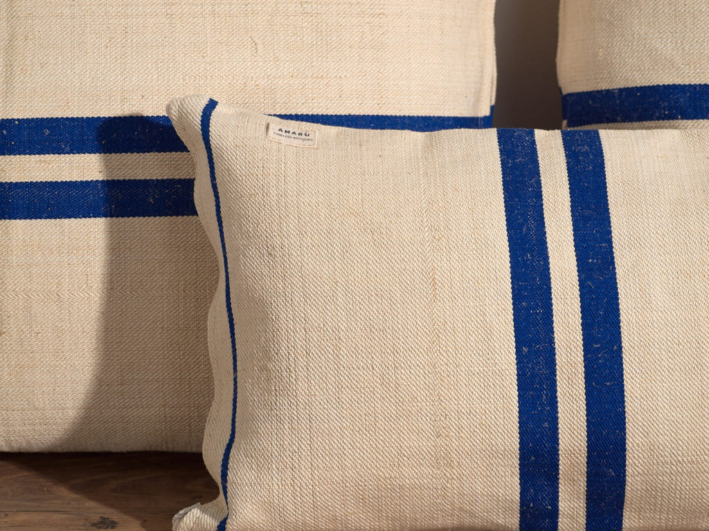 Our cushions are made from century-old linen fabric with an extra-thick fabric weight of 600 g/m². This is nothing like modern linen fabrics, which typically have a fabric weight of around 160 g/m². Our cushions will undoubtedly withstand the test of time thanks to their remarkable durability and strength.