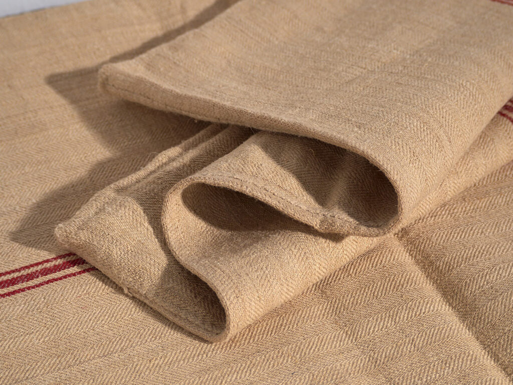 Our cushions are made from century-old linen fabric with an extra-thick fabric weight of 600 g/m². This is nothing like modern linen fabrics, which typically have a fabric weight of around 160 g/m². Our cushions will undoubtedly withstand the test of time thanks to their remarkable durability and strength.