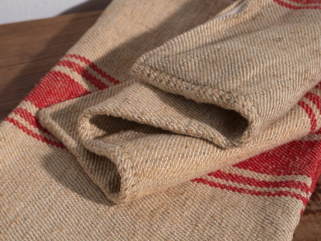 Our cushions are made from century-old linen fabric with an extra-thick fabric weight of 600 g/m². This is nothing like modern linen fabrics, which typically have a fabric weight of around 160 g/m². Our cushions will undoubtedly withstand the test of time thanks to their remarkable durability and strength.
