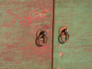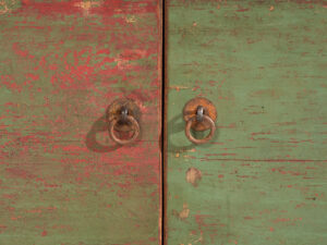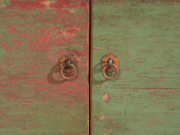 Antique oriental TV cabinet with green and red patina (c.1900)