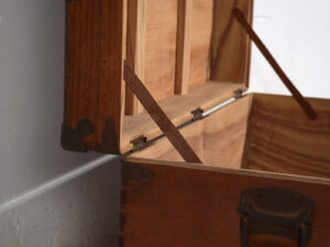 The Meiji period (1868–1912) marked Japan’s modernization and its opening to the Western world. While traditional woodworking techniques were preserved, new furniture typologies linked to transport, commerce, and mobility emerged. Chests such as this one embody that transition, combining reinforced construction, resistant materials, and a clear practical purpose.