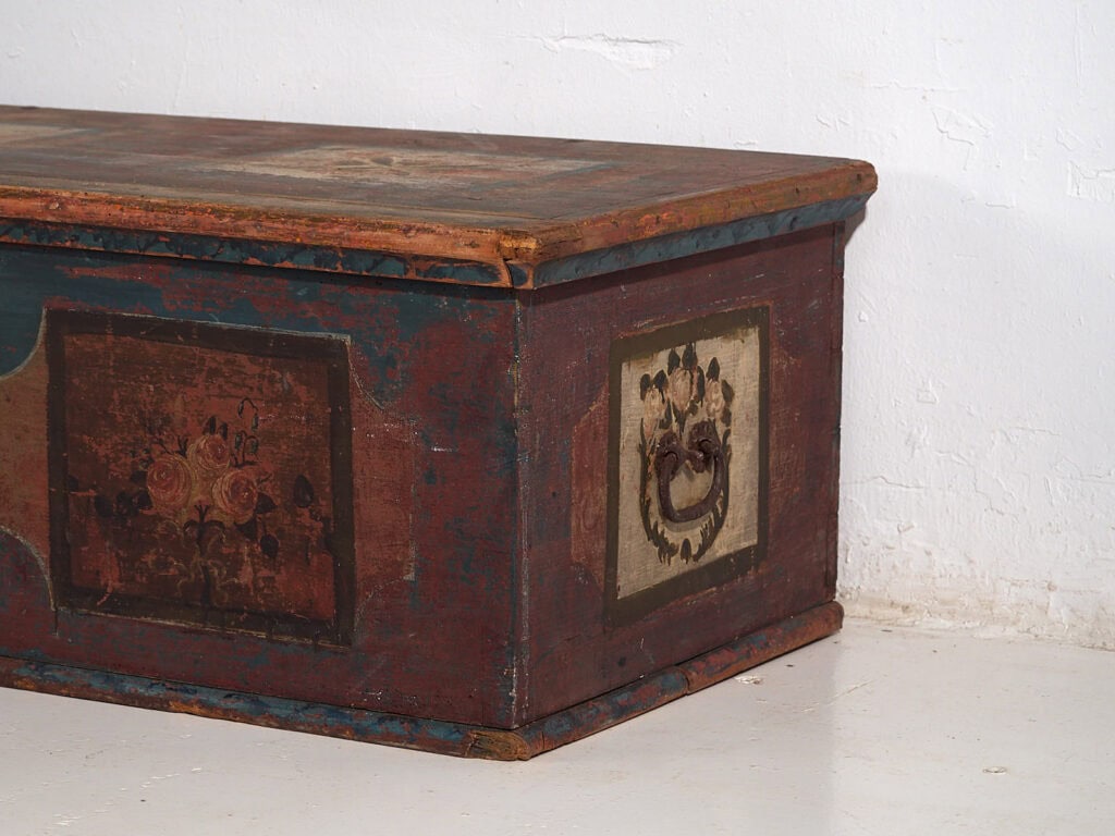 Give a point of originality to your home with this unique piece, which merges with the contemporary style bringing personality to your home. This antique red trunk can be combined with any of our benches or with our available antique console tables.