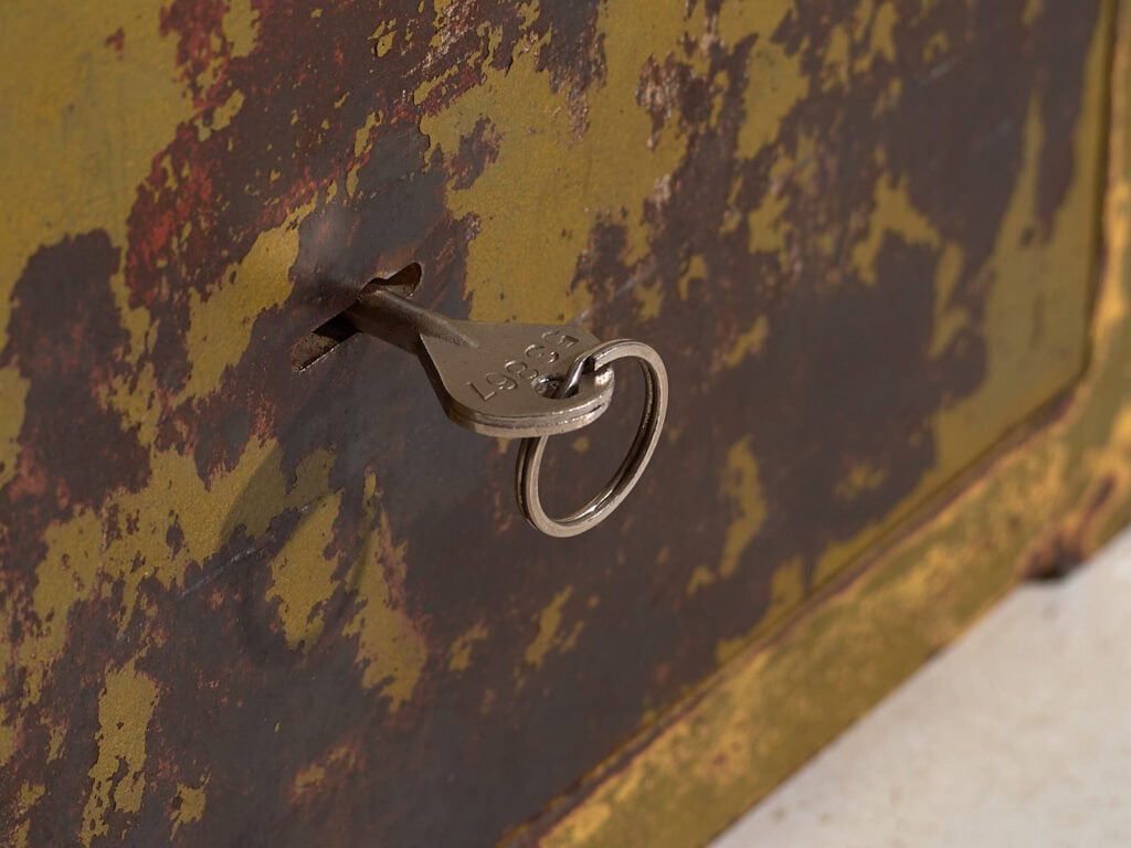 Give a point of originality to your home with this unique piece, which merges with the contemporary style, bringing personality to your home. This iron safe can be combined with any of our cabinets or with our available antique low tables.