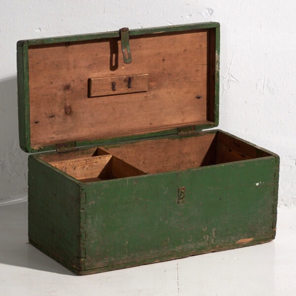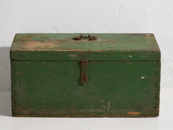 This green antique wooden chest is a unique piece, built by craftsmen more than a hundred years ago. It adds a unique personality in any room.