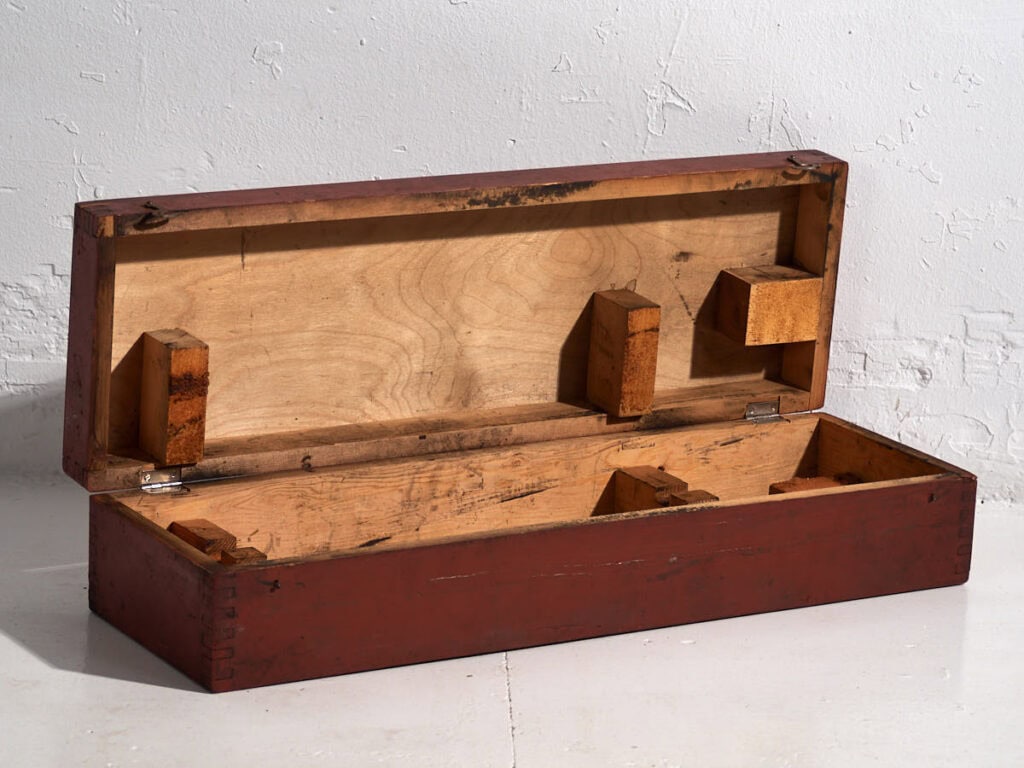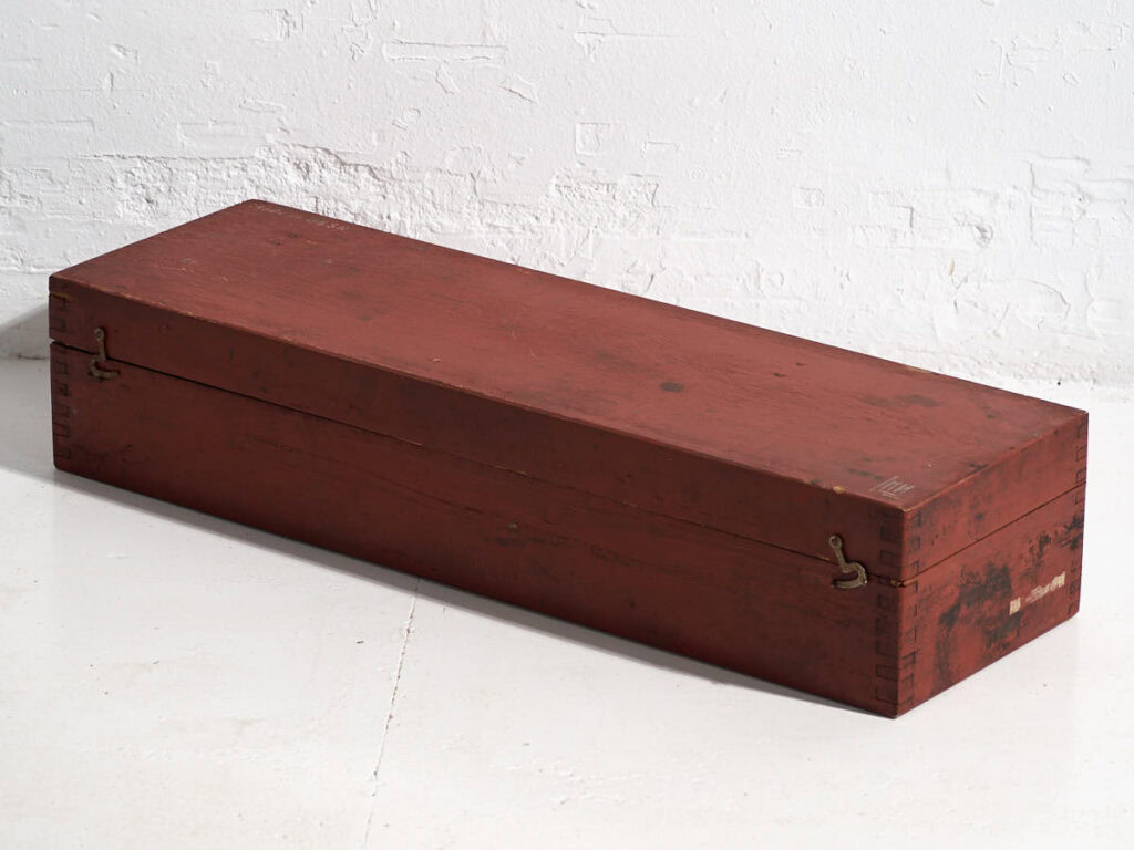 Solid pine wood, red vintage rifle case (Poland, c.1940).