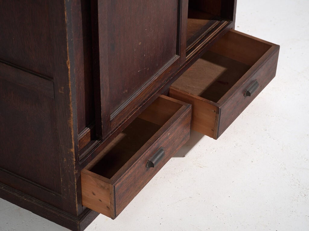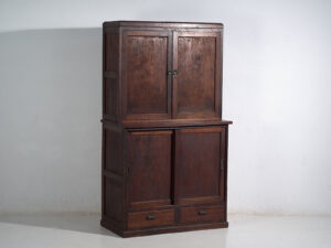 Free of unnecessary ornamentation, this cabinet embodies the spirit of the Taishō period: honest, well-constructed furniture designed to integrate naturally into domestic life. Its architectural presence and generous storage capacity make it an especially versatile piece today.
