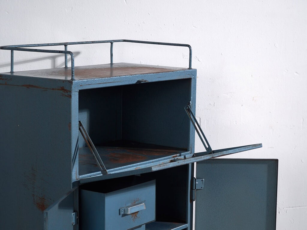 Give a point of originality to your home with this unique piece, which merges with the contemporary style bringing personality to your home. This vintage metal cabinet can be combined with any of our TV furniture or with our available antique garden tables .