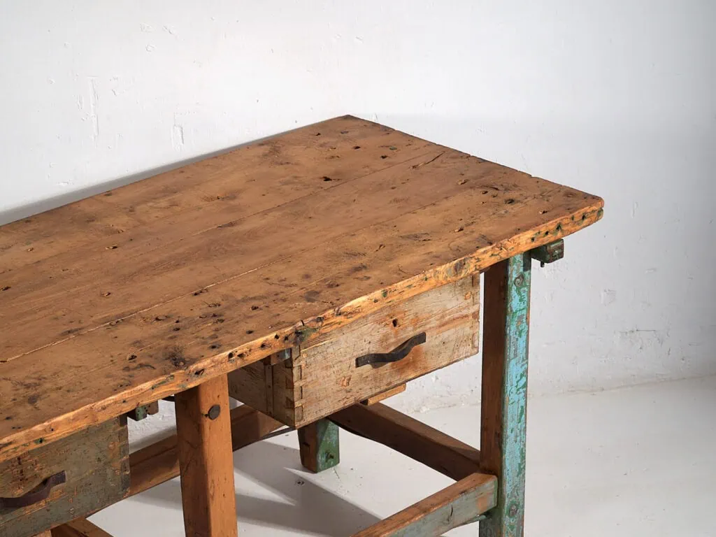 Give a point of originality to your home with this unique piece, which merges with the contemporary style bringing personality to your home. This antique work table can be combined with any of our cabinets or with our available antique stools .