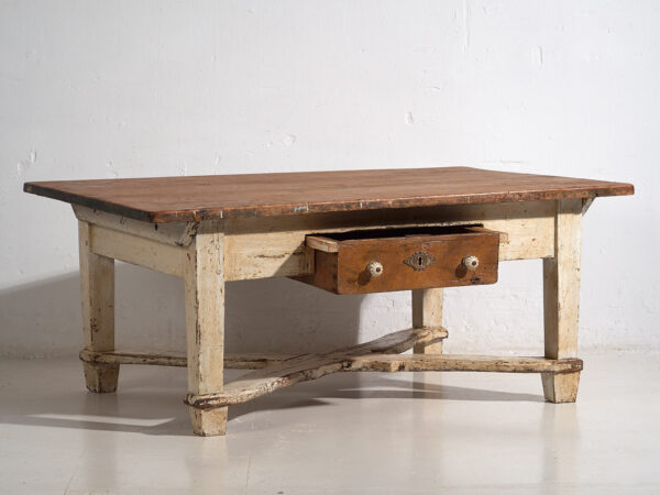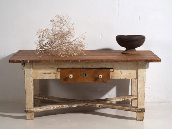 Give a point of originality to your home with this unique piece, which merges with the contemporary style bringing personality to your home. This white table can be combined with any of our vases or with our available antique stools.