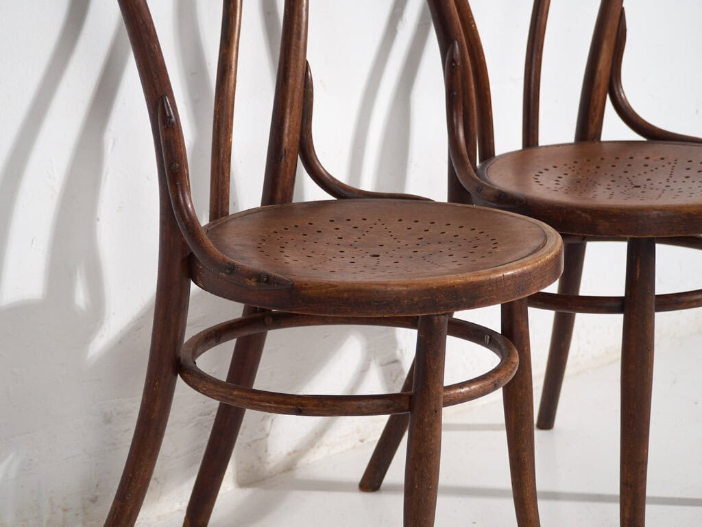 They are undoubtedly real Thonet chairs, although no stamp or mark attests to their authenticity.