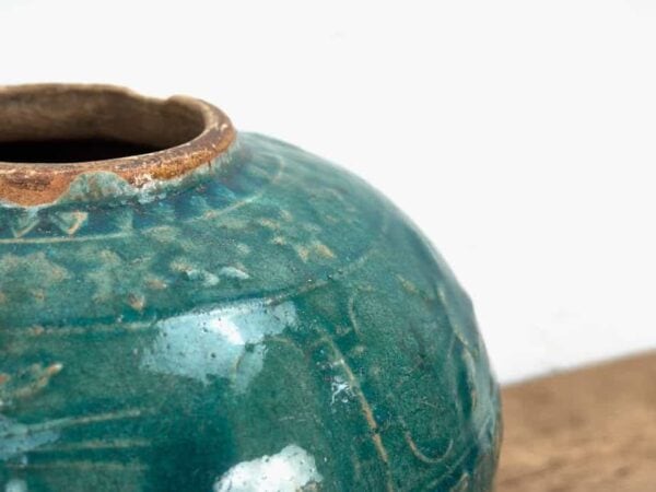 Il a une antiquité estimé environ 200 ans, année approximative de fabrication: 1820. Ce vase en céramique antique a une hauteur de 20 cm et un diamètre de 23 cm. La structure en céramique a été cristallisée et l’effet précieux de la cristallisation qui s’est produit pendant le processus de cuisson est visible sur les photos détaillées. Il a été récupéré dans la province du Hunan dans un état de conservation optimal. Ce vase chinois ancien est une pièce unique de céramique, fabriquée à la main selon les standards du moment. Il faut dire qu’il est actuellement difficile de trouver des pièces de cet âge avec ce bon état de conservation.