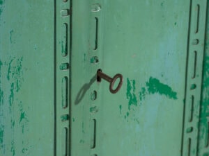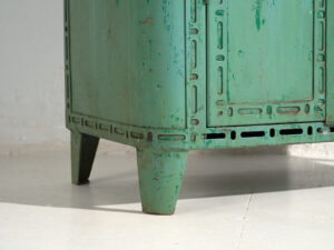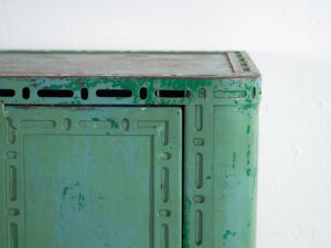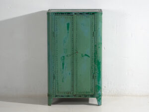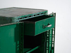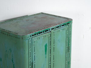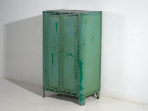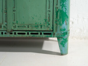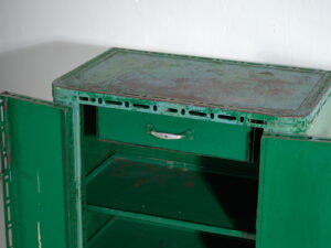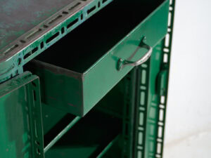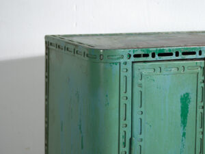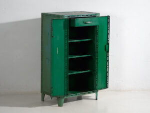 Meuble vintage en métal vert provenant d’une usine automobile (Autriche, vers 1950).
