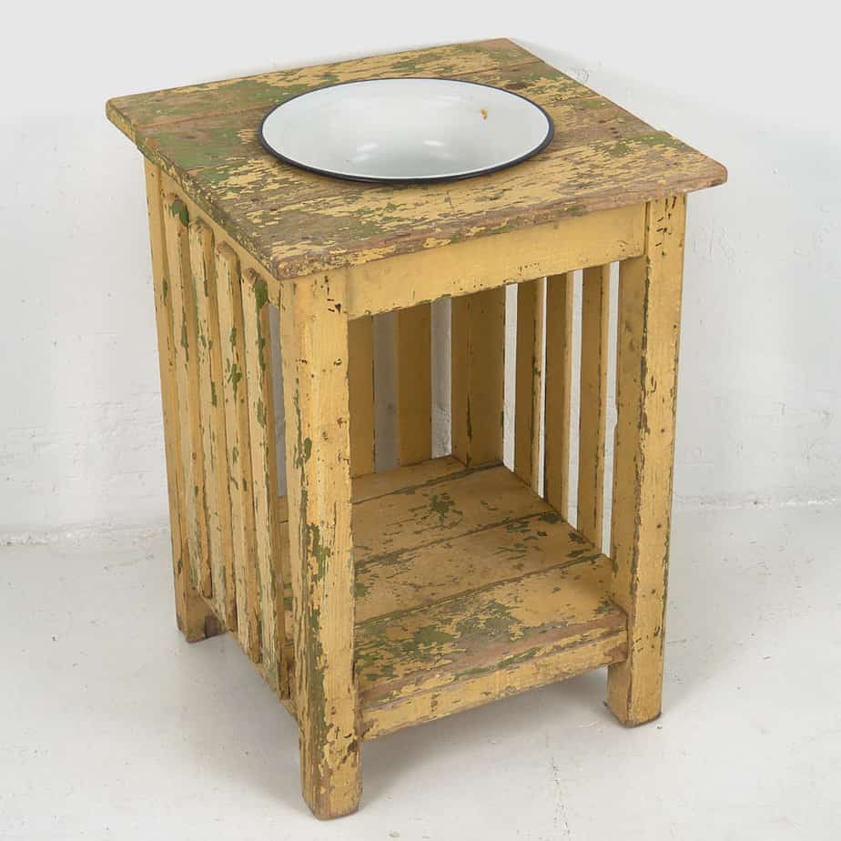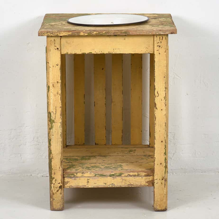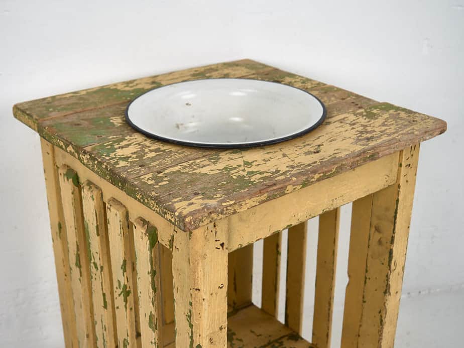 Vasque vintage avec support en bois (c.1930)