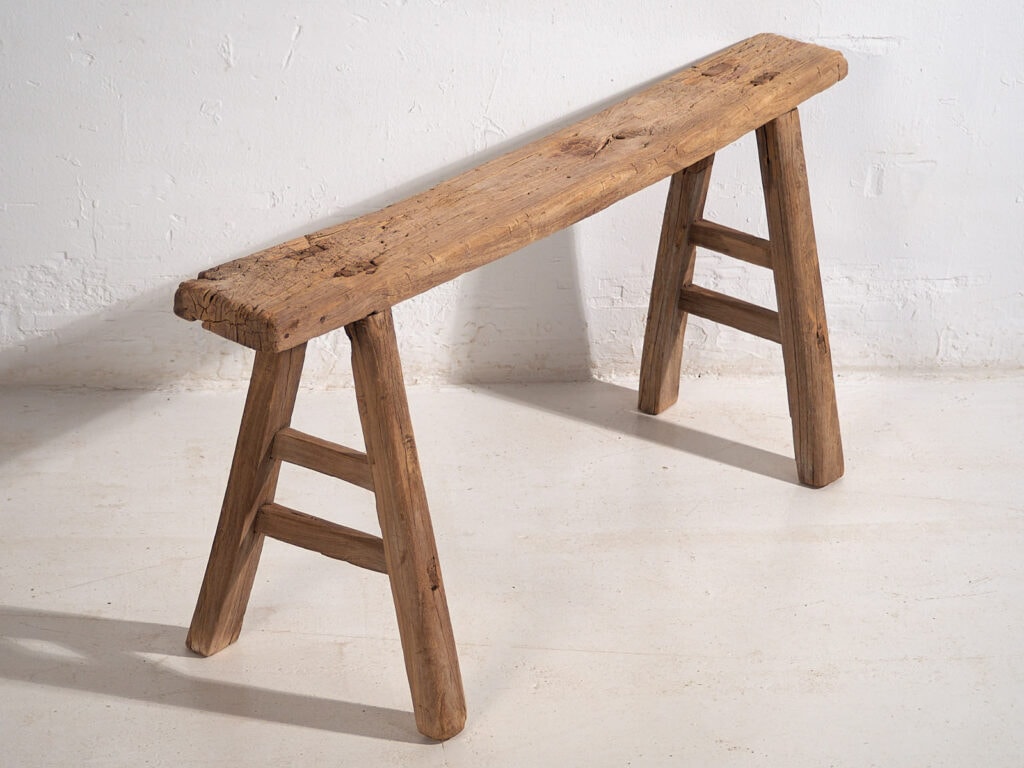 Il est en excellent état de conservation, à l’exception des imperfections caractéristiques de toute antiquité, dues au passage du temps. Donnez à votre intérieur une touche d’originalité avec une pièce unique qui s’intègre dans le style contemporain et apporte de la personnalité à votre intérieur. Ce banc en bois peut être combiné avec l’une de nos tables consoles ou avec nos tabourets anciens disponibles.