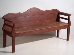 Grand banc ancien de couleur rouge bordeaux (vers 1920)
