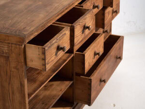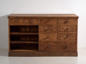 Ajoutez une touche d’originalité à votre intérieur avec cette pièce unique, qui se fond dans le style contemporain et donne de la personnalité à votre intérieur. Ce comptoir de magasin antique peut être combiné avec l’une de nos malles ou avec nos chaises Thonet anciennes disponibles.