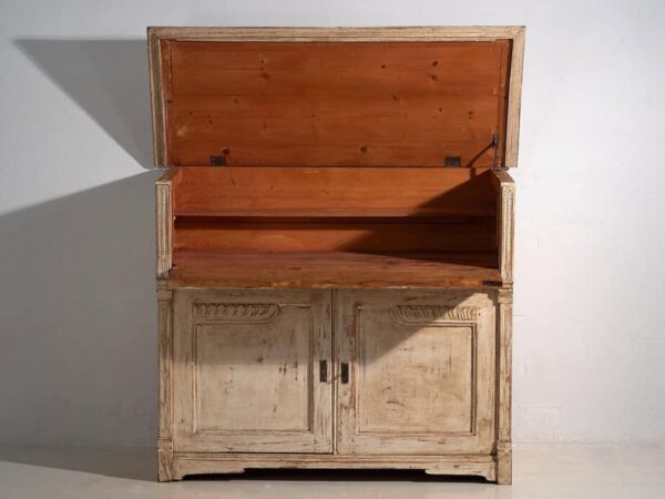 Cette commode blanche peut être combinée avec n’importe laquelle de nos chaises Thonet ou avec nos malles anciennes disponibles.