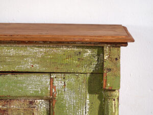 Donnez une touche d’originalité à votre intérieur avec cette pièce unique, qui se marie avec le style contemporain en apportant de la personnalité à votre intérieur. Cette commode vert ancienne peut être combinée avec l’un de nos vases ou avec nos chaises anciennes disponibles.