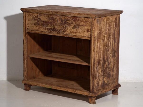 Cette commode en bois peut être associée à l’un de nos bancs ou à l’un de nos buffets anciens disponibles.