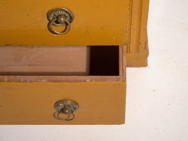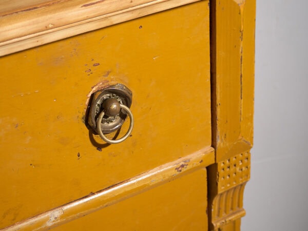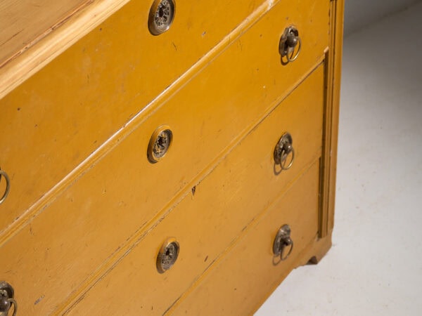 Donnez une touche d’originalité à votre intérieur avec cette pièce unique, qui se marie avec le style contemporain en apportant de la personnalité à votre intérieur. Cette commode ancienne à quatre tiroirs peut être associée à l’un de nos coussins en lin ancien ou à l’une de nos tables consoles disponibles.