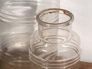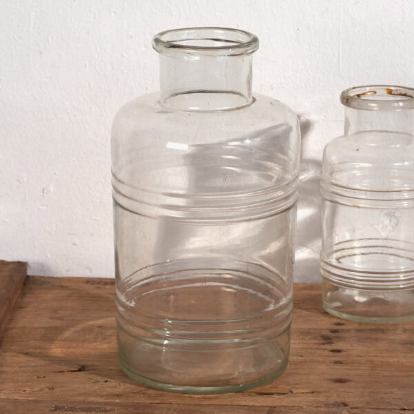 Ajoutez une touche d’originalité à votre intérieur avec ces pièces uniques, qui s’intègrent dans le style contemporain et apportent de la personnalité à votre intérieur. Cet ensemble de bouteilles transparentes peut être associé à l’une de nos commodes ou à nos chaises anciennes disponibles.