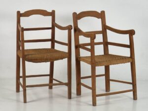Fauteuils anciens en chêne (vers 1900). Ensemble de 2 pièces