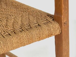 - Matériau : bois de chêne et assise en fibre naturelle.