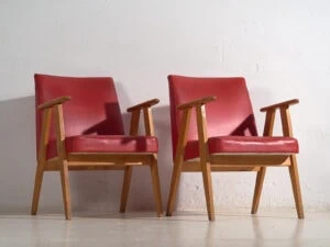 Fauteuils rouges de style vintage (vers 1960). Ensemble de 2 pièces