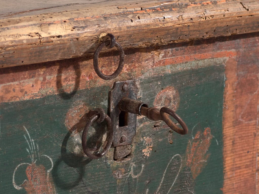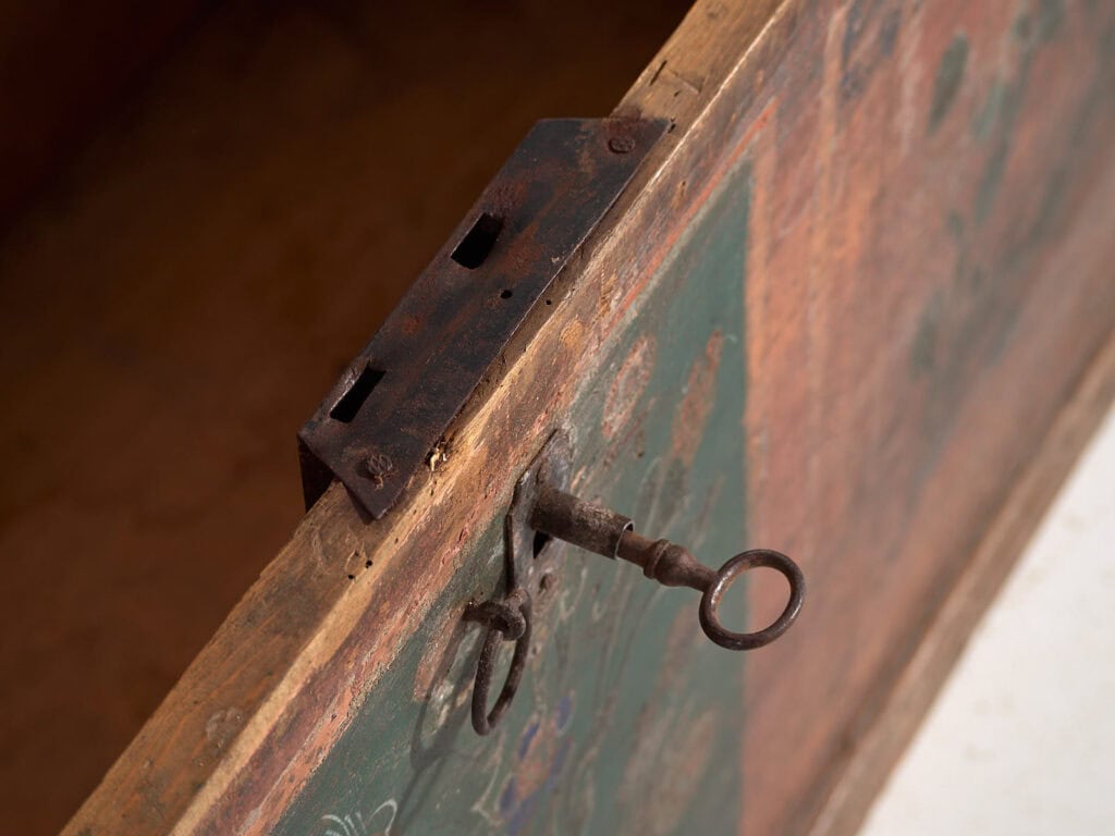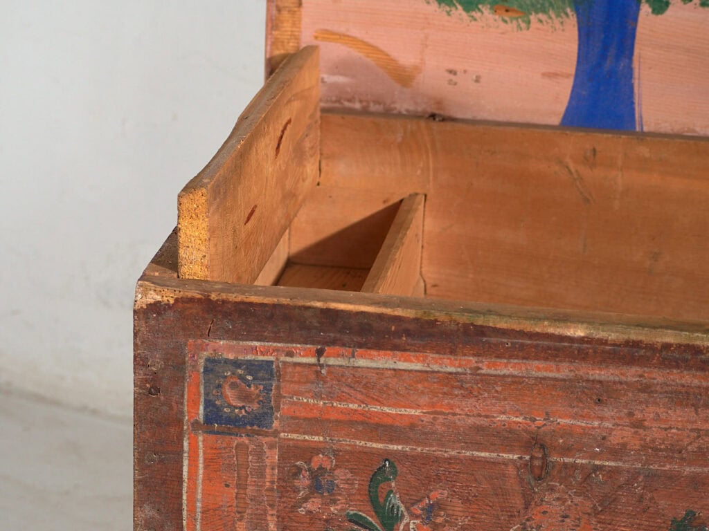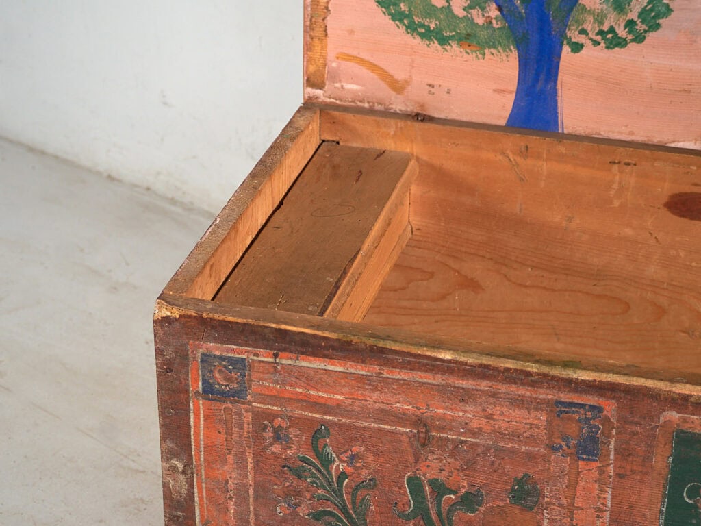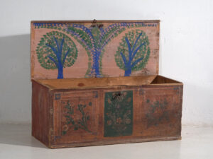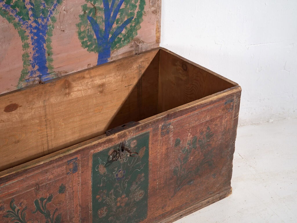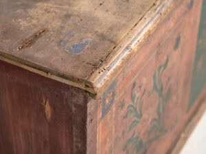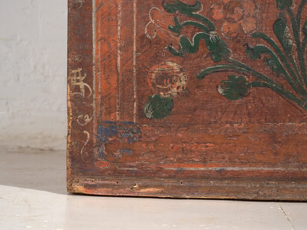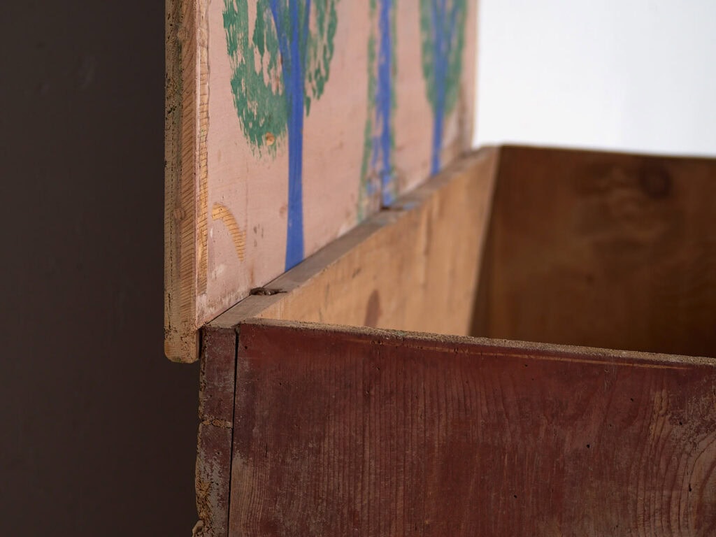 - Matériaux et techniques : Bois de pin, peint à la main.