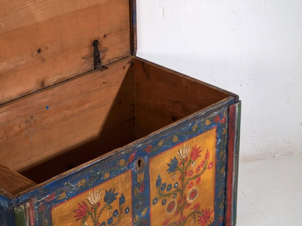 Coffre ancien de style Folk Art avec motifs floraux (c.1920)