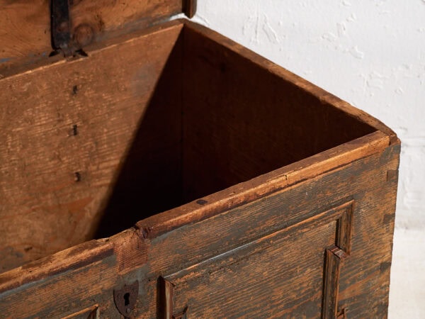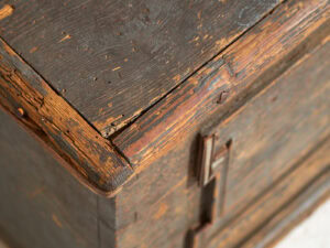 Notre coffre en bois ancien est une pièce unique qui se distingue par :