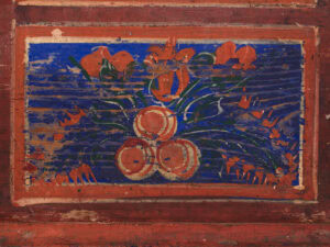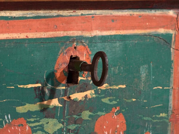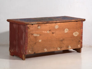 Coffre ancien peint à la main avec des motifs floraux (Année 1907)