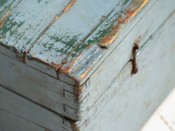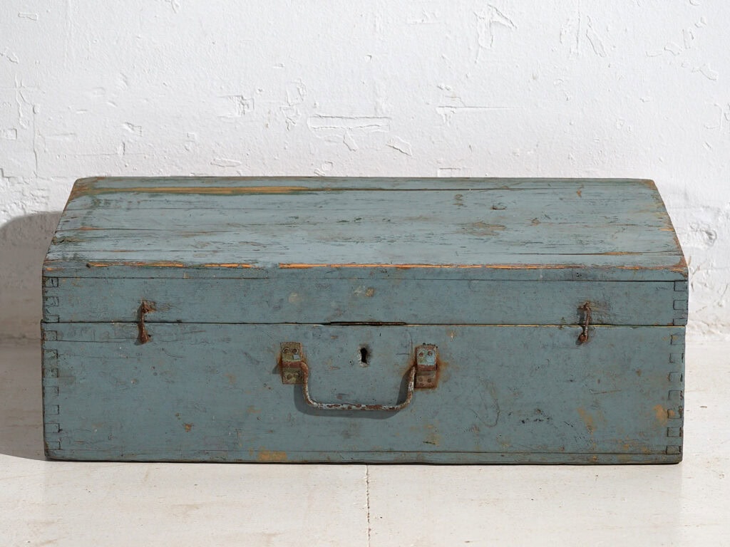 Ancien coffret en bois patiné bleu clair (c.1920) #61