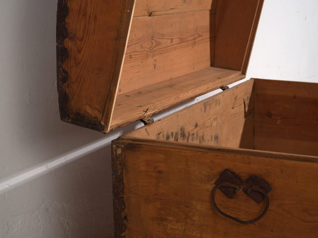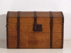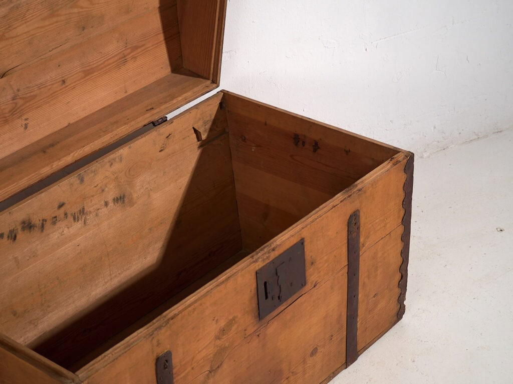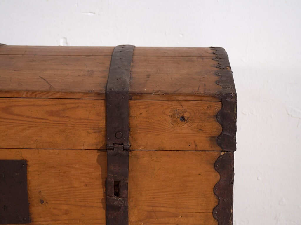 Malle ancienne en bois naturel avec structure métallique (vers 1900)