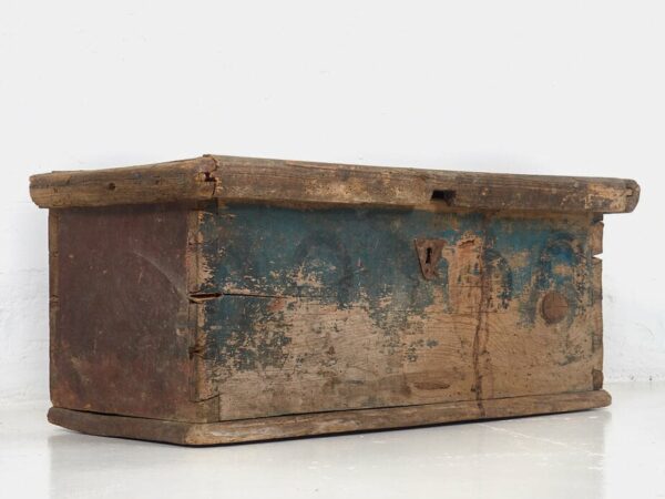 Petit coffre encien en bois aux tons bleutés (vers 1890)