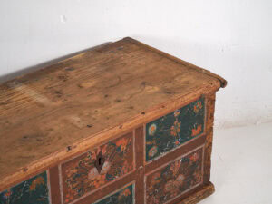 Malle de rangement ancienne à décor floral (anné 1895)