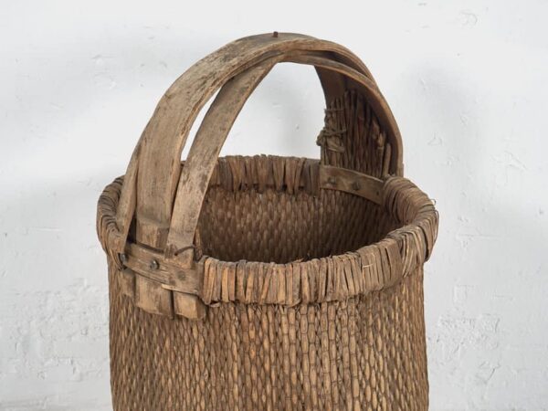 Notre ancien panier en saule était autrefois utilisé comme panier de travail pour les tâches agricoles telles que la récolte du riz. Son âge est estimé à environ 120 ans. Il a été récupéré dans une vieille maison en Chine.
