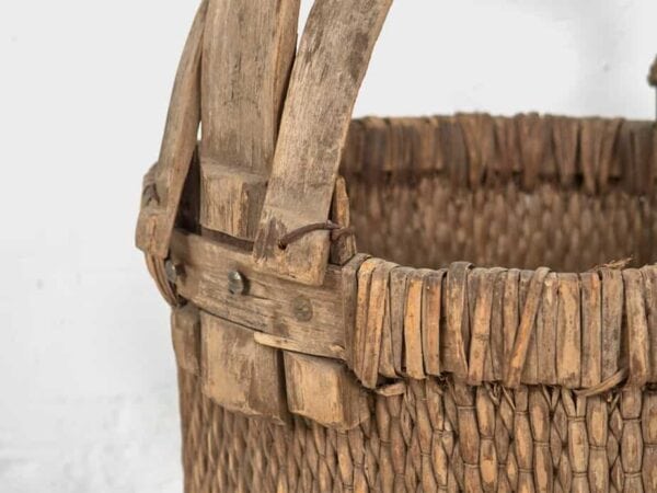 Ancien panier en saule avec anse en bois massif (c.1870)
