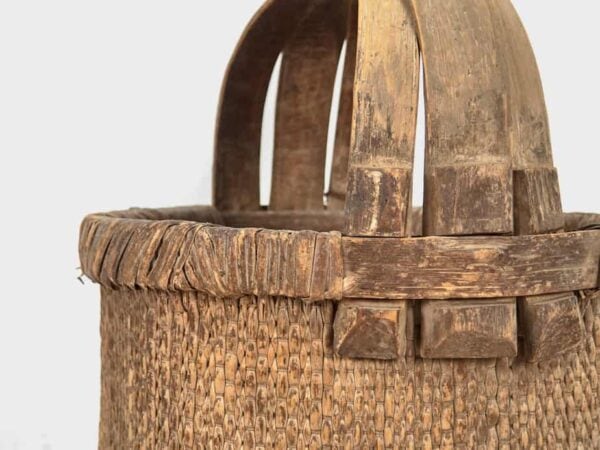 Notre ancien panier en saule était autrefois utilisé comme panier de travail pour les tâches agricoles telles que la récolte du riz. Son âge est estimé à environ 120 ans. Il a été récupéré dans une vieille maison en Chine.